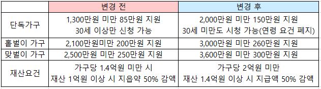단독가구만 봐도 85만 원에서 150만 원으로 65만 원이 늘었습니다.