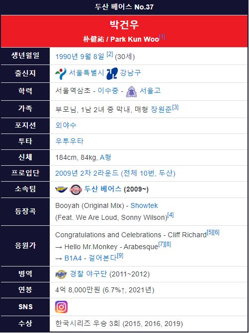 그리고 만약 FA 자격을 획득한 박건우 야구선수가 두산 베어스가 아닌 다른 구단으로 이적하게 되는 상황이 올 수 있을지에 대해서도 지켜보면 좋을 것 같습니다. 지금까지 두산 박건우 선수에 대해서 알아보았습니다. 꾸준하게 성적을 유지면서 좋은 활약을 보여주고 있는 박건우 선수를 응원하며 포스팅을 마치겠습니다.