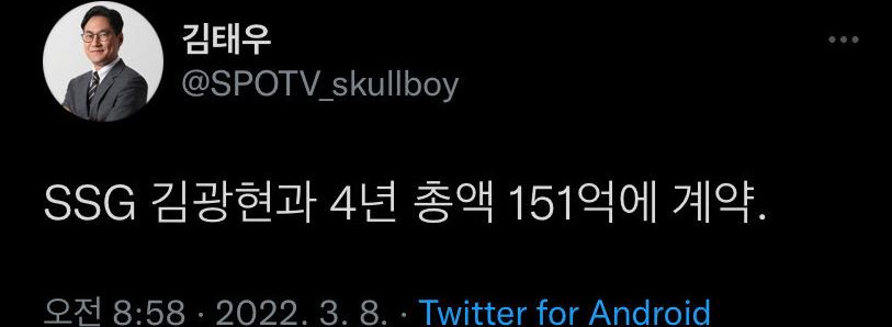 2022년 3월 8일 SSG 랜더스 구단과 김광현 야구선수는 KBO 복귀 계약을 체결하였습니다. SSG 랜더스와 김광현은 계약기간 4년, 연봉 131억원, 옵션 20억원으로 총액 151억원의 초대형 계약을 체결하였습니다. 이로써 김광현 야구선수는 프로야구 역사상 최대규모 계약 신기록을 세웠습니다.