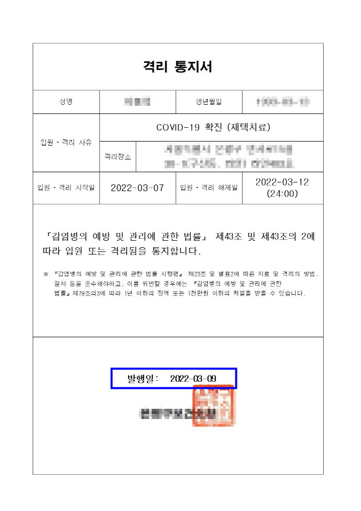 개편된 코로나 생활유지비와 유급휴가 지원금 적용기간은 2022년 3월 16일 이후 격리자로, 격리통지서 날짜를 기준으로 적용될 예정입니다. 만약, 격리통지서 상 날짜가 2022년 3월 16일 이전이면 개편 전의 지원금을 받을 수 있습니다.