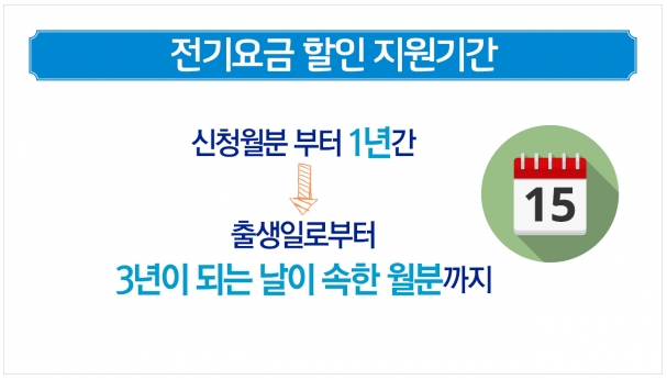 즉, 신생아 출산 전기세 감면 혜택을 받을 수 있는 기간은 주민등록상 출생일로부터 3년 미만인 영아가 1명 이상 있는 가구입니다.