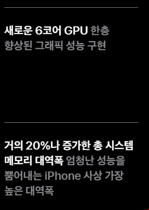 그리고 아이폰 16 프로 프로세서인 A18 Pro는 GPU 6 코어, CPU 2 성능코어와 4 효율코어로 구성되어 A17 Pro가 탑재된 아이폰 15 프로보다 CPU는 최대 15%, GPU는 최대 20% 속도가 상승하였습니다. 성능적인 부분이 크게 상승하였다고 느껴지지 않을 수 있지만, 아이폰 16 프로 배터리 타임에 큰 영향을 주었습니다.