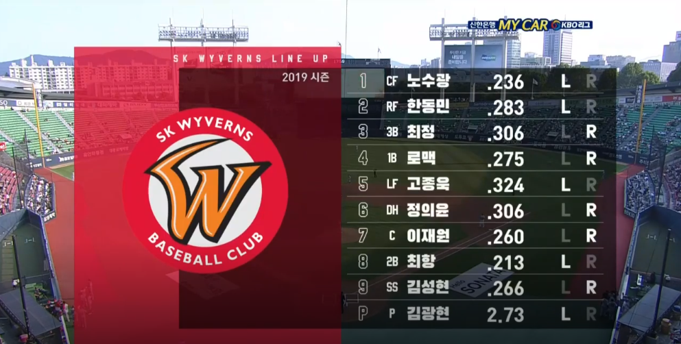 반면에 두산 베어스는 2회 말 1 득점으로 SK 와이번스를 쫒아갔지만