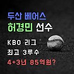 "2021년 FA 시장 최대어, 두산 베어스 허경민 야구선수 7년 계약 체결, 연봉 타율 알아보기" 오늘 소개시켜드릴 선수는 최근 7년 FA 계약을 체결한 두산 베어스 허경민 야구선수입니다. 안녕하세요. 야구 읽어주는 남자 this-evening의 Baseball-Time 시간입니다. "2021년 FA 시장 최대어, 두산 베어스 허경민 야구선수 7년 계약 체결, 연봉 타율 알아보기"라는 제목으로 두산 허경민 선수에 대한 포스팅을 시작해보겠습니다.2020년 12월 10일 목요일, 2021년 FA 시장 최대어라고 불리는 두산 베어스 허경민 야구선수의 FA 계약이 체결되었다고 발표되었습니다. 허경민 선수를 차지한 프로야구 구단은 원 소속 구단인 두산 베어스입니다. 두산 베어스는 소속선수 중 자유계약선수로 FA..